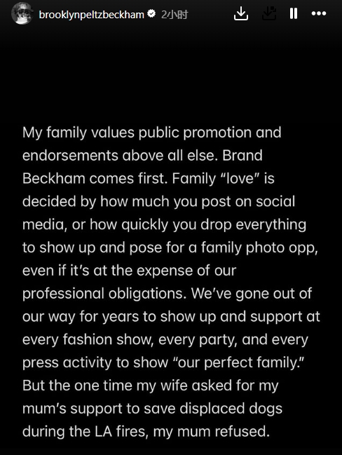 布鲁克林·贝克汉姆发文: