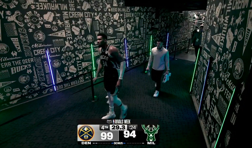 开云官网-沮丧!字母哥小腿不舒服啊 走去球员通道又回了替补席!