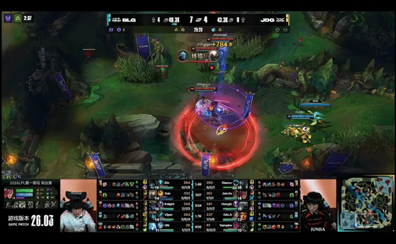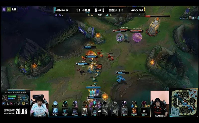 虎扑03月04日讯 【GAME5】JDG红色方;BLG蓝色方