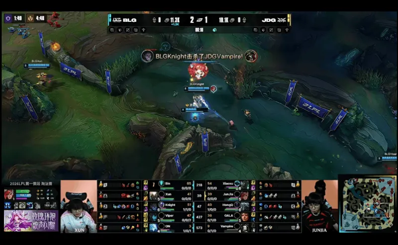 23分钟,小龙团JDG未能拿到小龙,BLG完成0换2